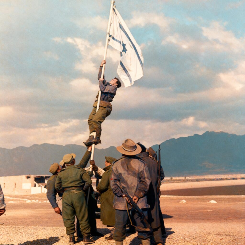صورة من عام 1949، تظهر فيها القوات الص.هي.ونية وهي ترفع علمها على أرض أم الرشراش المصرية، تلك البقعة التي سُرقت في وضح النهار، ثم تحوّلت لاحقًا إلى أهم موانئ الاحتلال على البحر الأحمر: إيلات .